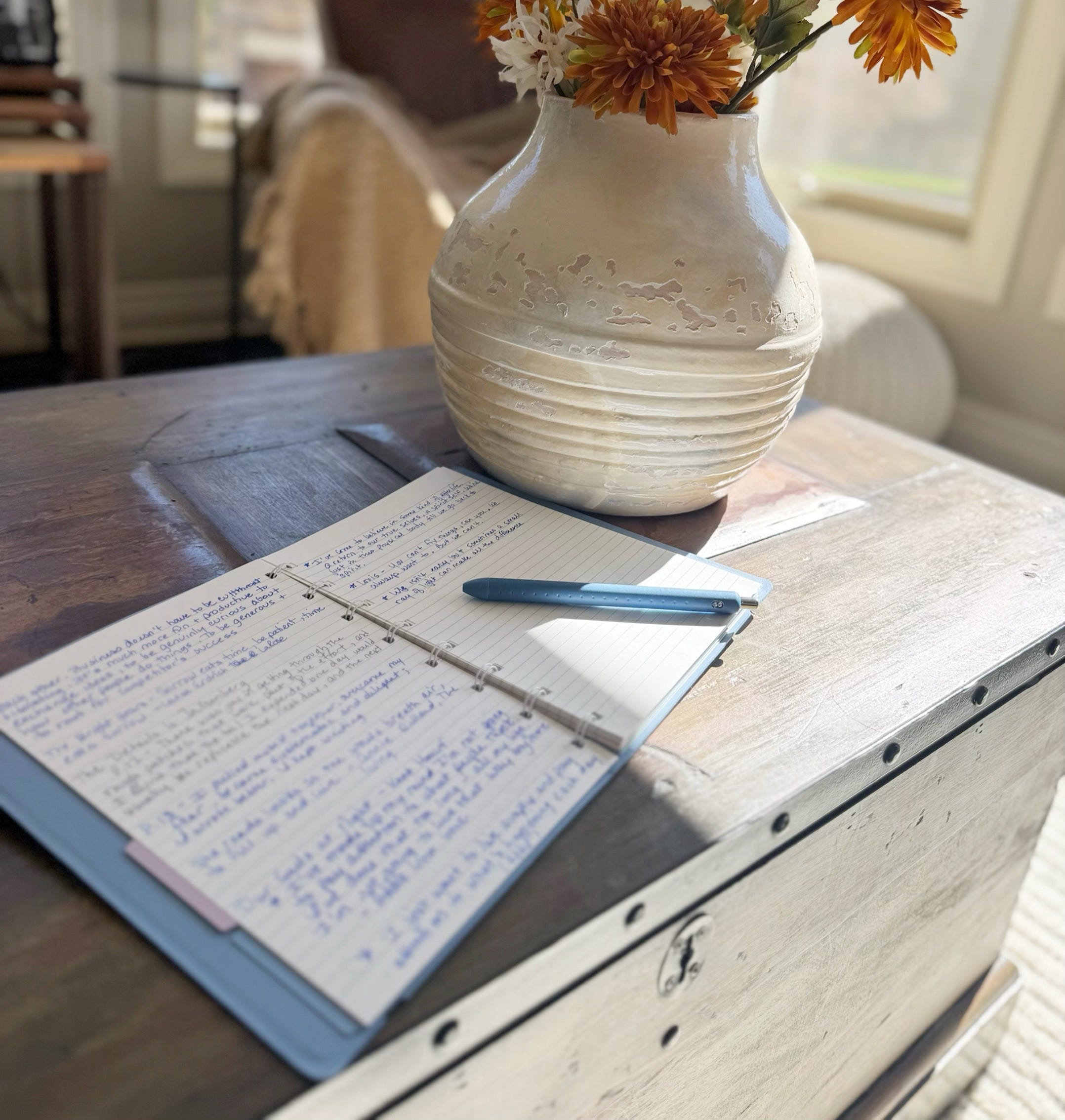 My commonplace journal is separate from my daily journal (a Leuchtturm 1917) where I write what’s on my mind, other random thoughts, problems I’m grappling with etc. For my treasured quote collecting, I use a Filofax notebook. I find the paper is so smooth to write on and since I suspect you all might love pens like I do, I’ll tell you that my favorite pens to use with both my morning and commonplace journals are Le Pens, Paper Mate Ink Gels 0.7 or Pilot G-2 07 in purple1.